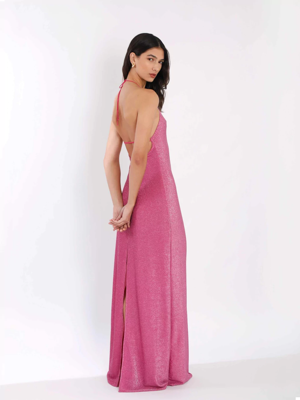 Vestido largo de tela elastizada que marca la silueta de manera sensual y única, confeccionado en lurex con spandex. Este vestido es ideal para quienes desean destacar en cualquier evento. Su diseño ajustado resalta las curvas, mientras que el brillo del lurex le da un toque especial.